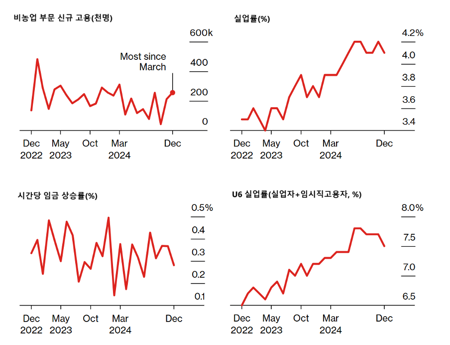 2024년 12월 미국의 고용 지표에 따르면, 비농업 부문에서 256,000개의 일자리가 증가되어 예상치를 크게 상회하였으며, 실업률은 4.1%로 하락 하였는데 역시 이내용도 금리정책과 밀접한 관계가 있습니다.